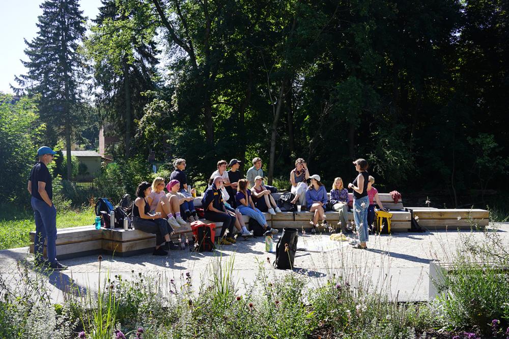 Nach einem gemeinsamen Ausflug zum Pleißenbach Chemnitz und zum Bürger- und Familienpark Oelsnitz (Erzgebirge) finden sich alle „Stationierten“ inklusive privatem Anhang im Hof des Tapetenwerks Leipzig ein um bei sommerlichen Drinks und Snacks über alles andere als die Arbeit zu sprechen und vor allem die in diesem Jahr neu dazugestoßenen Mitarbeitenden noch besser kennenzulernen.