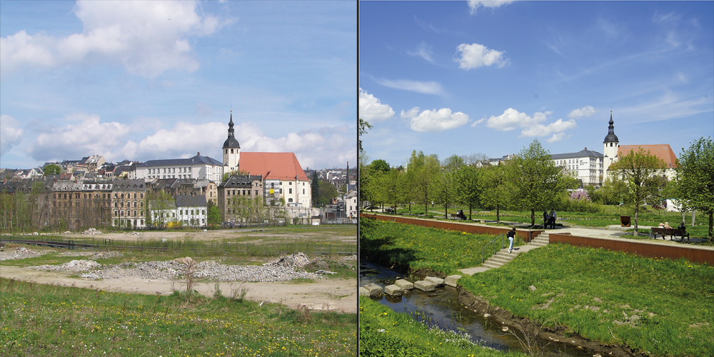 Für das ehemalige Bahngelände Chemnitz Altendorf wurde entlang des Pleißenbachs die Entwicklung eines attraktiven, grünen Stadtraums geplant. Unser Büro wurde im Jahr 2014 zunächst mit der Erstellung eines städtebaulichen Rahmenplans für das Gebiet beauftragt. Weiterführend konnten wir für die Freianlagen, die Gewässerrenaturierung sowie in der Vorplanung die Brückenbauwerke als Generalplaner die Objektplanung erstellen und durchführen.